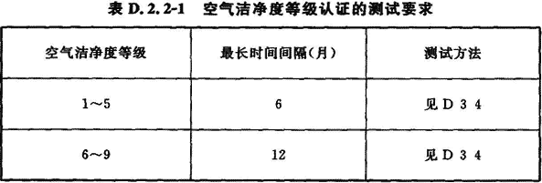 D.2.2 空氣潔凈度等級、靜壓差、風速或風量的認證測試的最長時間間隔應符合表D.2.2—1和表D.2.2—2的規定。