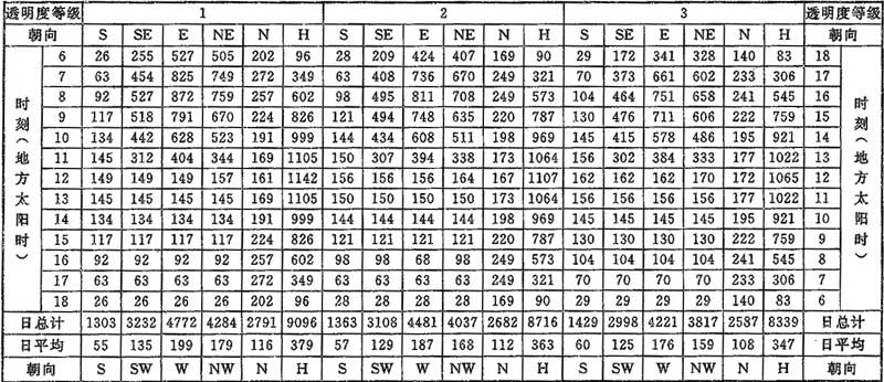 表C.0.1-3 北緯30°太陽總輻射照度(W/m2)