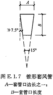 E.1.7 選用套管法時,可用輕質(zhì)板材或膜材做成與風口內(nèi)截面相同或相近、長度大于2倍風口邊長的直管段作為輔助風管,連接于過濾器風口外部,在套管出口平面上,均勻劃分小方格,方格邊長不大于200mm,在方格中心設測點。對于小風口,最少測點數(shù)不少于6點。也可采用錐形套管,上口與風口內(nèi)截面相同或相近,下口面積不小于上口面積的一半,長度宜大于1.5倍風口邊長,側(cè)壁與垂直面的傾斜角不宜大于7.5°,以測定截面平均風速,乘以測定截面凈面積算出風量(圖E.1.7)。