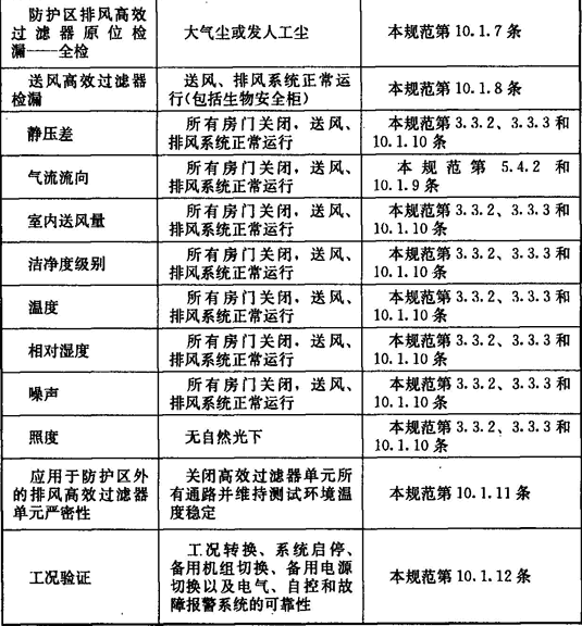 10.1.10 靜壓差、送風(fēng)量、潔凈度級(jí)別、溫度、相對(duì)濕度、噪聲、照度等室內(nèi)環(huán)境參數(shù)的檢測(cè)方法和要求應(yīng)符合現(xiàn)行國(guó)家標(biāo)準(zhǔn)《潔凈室施工及驗(yàn)收規(guī)范》GB 50591的有關(guān)規(guī)定。